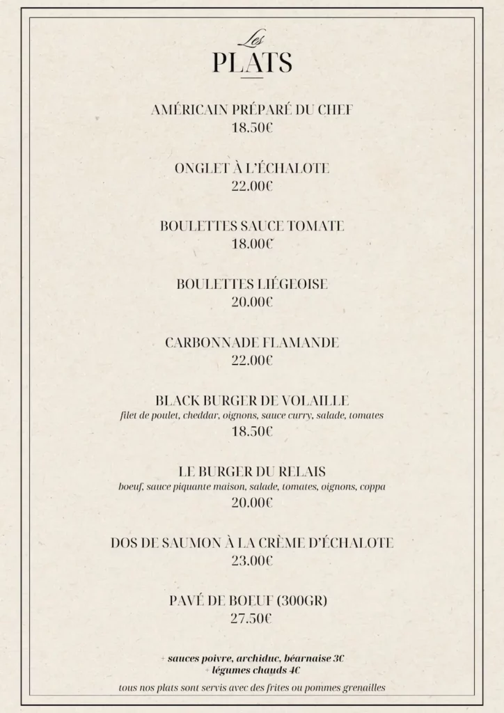Découvrez les menus présents au Relais Nos suggestions du moment Menu de la taverne Menu du restaurant Réserver dès maintenant Dîner entre amis ou soirée en famille, prenez place dans notre histoire en quelques clics. Réserver une table